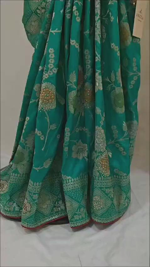 This saree comes with an unstitched blouse piece that can be tailored as per your style and fit.